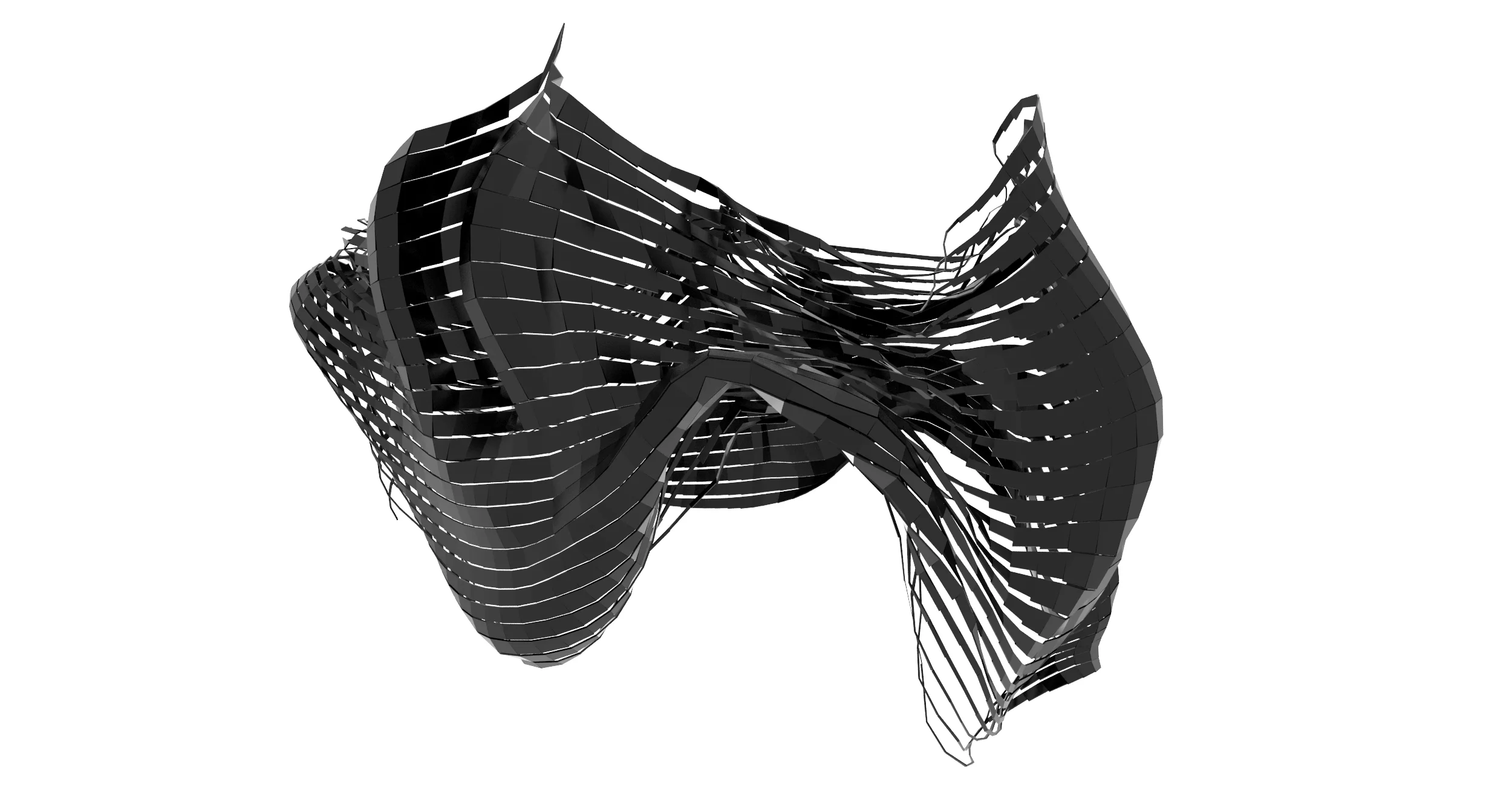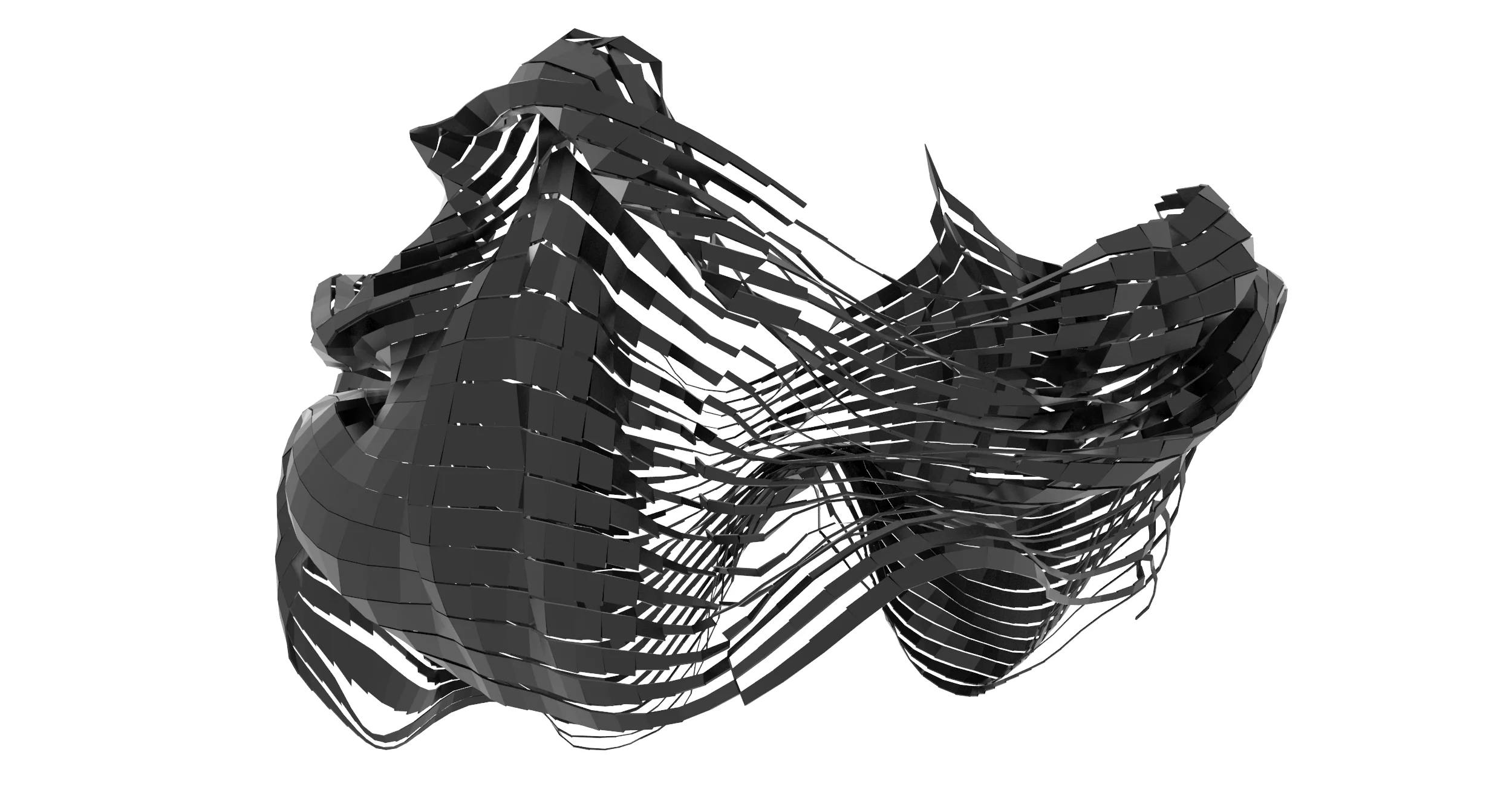Fabricated is a multi layered approach to physically based digital form generation and rationalization though applying soft physical attributes to initially rigid forms. Taking the subsequent folded and creased geometry it was then decomposed based on exposure to create parametric apperatures within the depths of the folds.